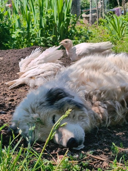 fena Darlyn II Farma Štěkot poctivě chránila pštrosí