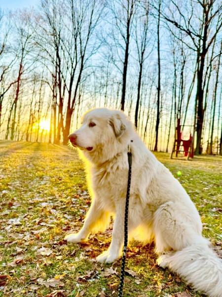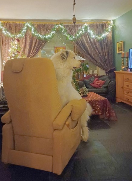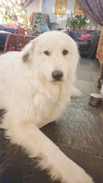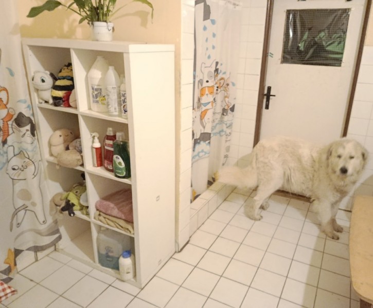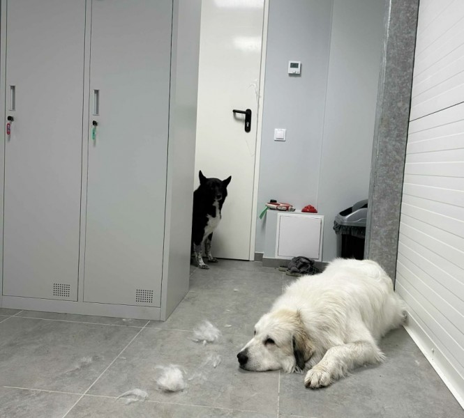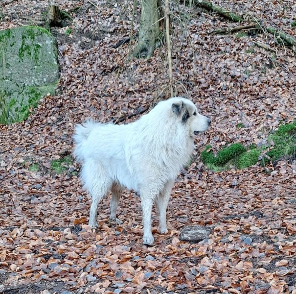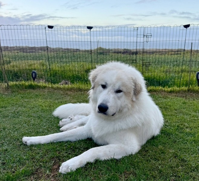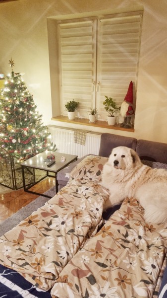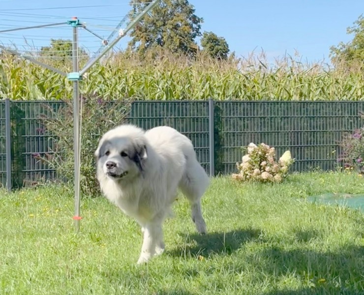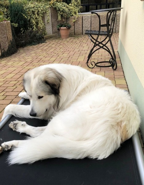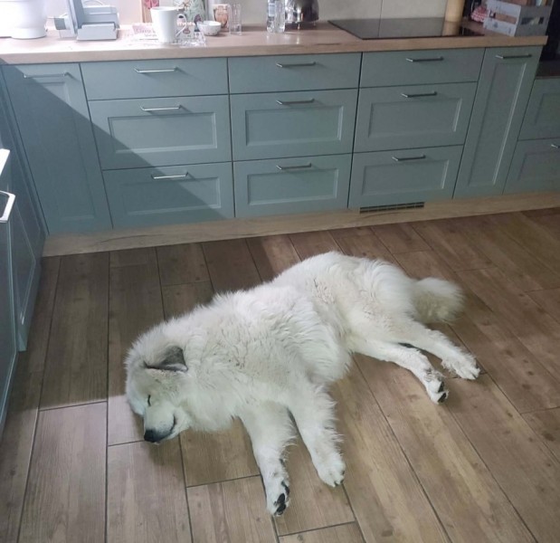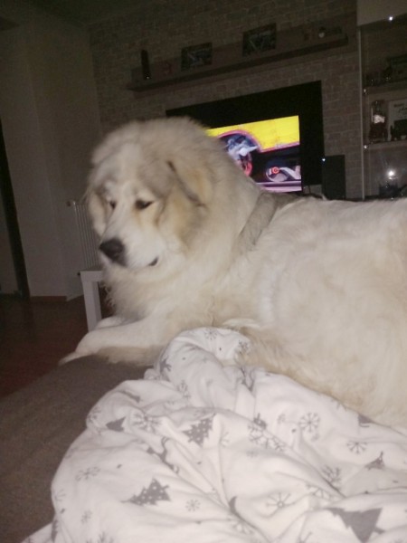 stejně jako fenka pyrenejského ovčáka týden před porodem!