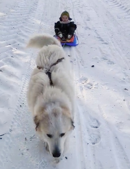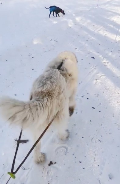 fena Babeta III Farma Štěkot si užívá zimní sportování